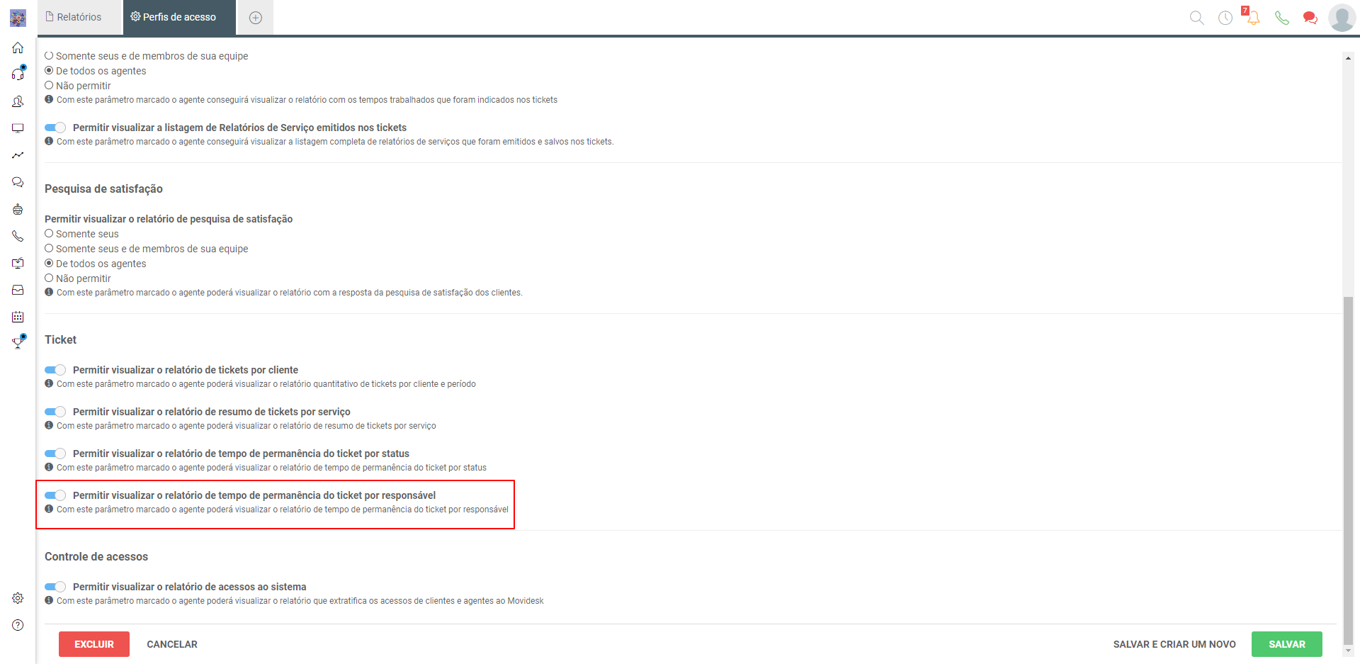 To view your report, access the Movidesk Side Menu -> Icon> Reports -> What is the time spent by tickets in each service stage by responsible person?: