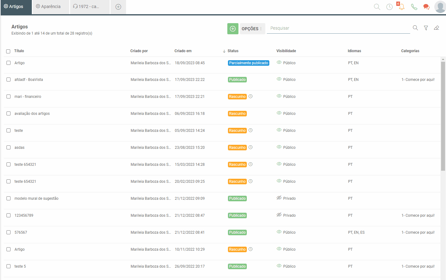 We can also publish only one of the available languages and keep the others as drafts, in which case the article will remain with the status "partially published."