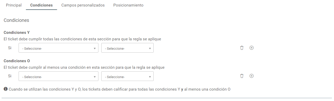 1. En la pestaña Condiciones, defina los criterios para activar la regla.