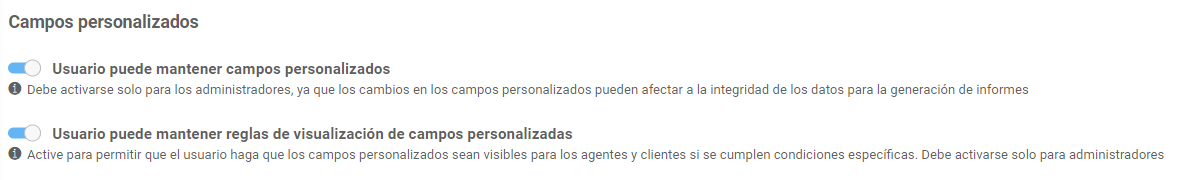 • Mostrar para: Quién verá el campo (agente, cliente o ambos).